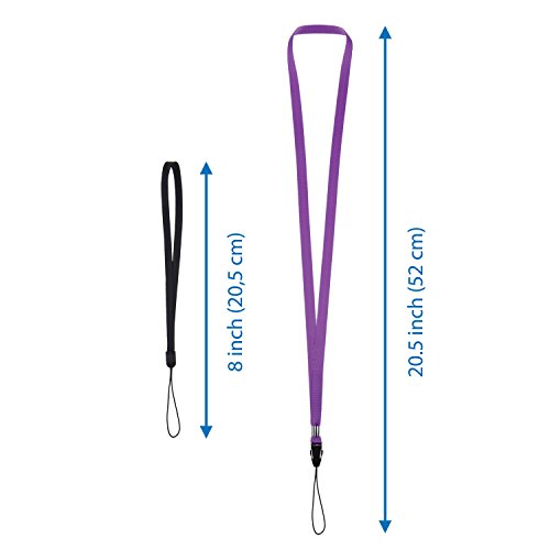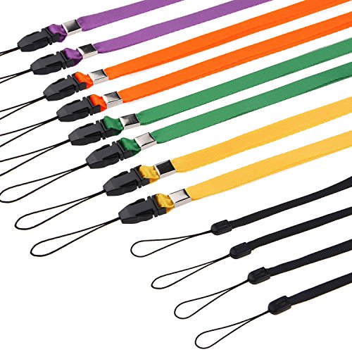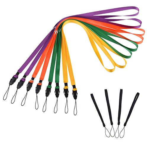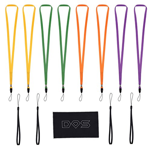 8 Neck Lanyards (Purple, Orange, Yellow, Green) and 4 Wrist Straps (black) - for ID Cards, Cell Phones, Keys, USB Drives, Compact Cameras, Flashlights, etc - Diamond Shield Cleaning Cloth / Packaging