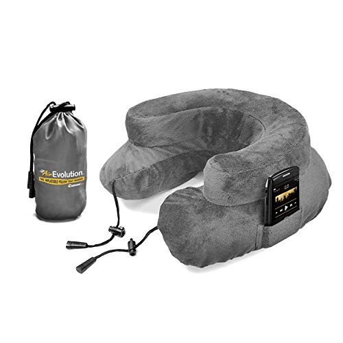 - Feature : COMPACT TRAVEL POUCH that attaches to your bag and compacts the pillow down to the size of a soda can / INFLATABLE AIR CORE that can be adjusted to your ideal comfort level / WASHABLE VELOUR COVER helps to eliminate germs and has ADJUSTABLE FRONT TOGGLES to hold the pillow in place / RAISED SIDE SUPPORTS offer 360° head and chin comfort and a FLATTER BACK CUSHION that won't push your head forward / MEDIA POUCH to hold your phone or mp3 player while you listen to music hands-free and lap-free