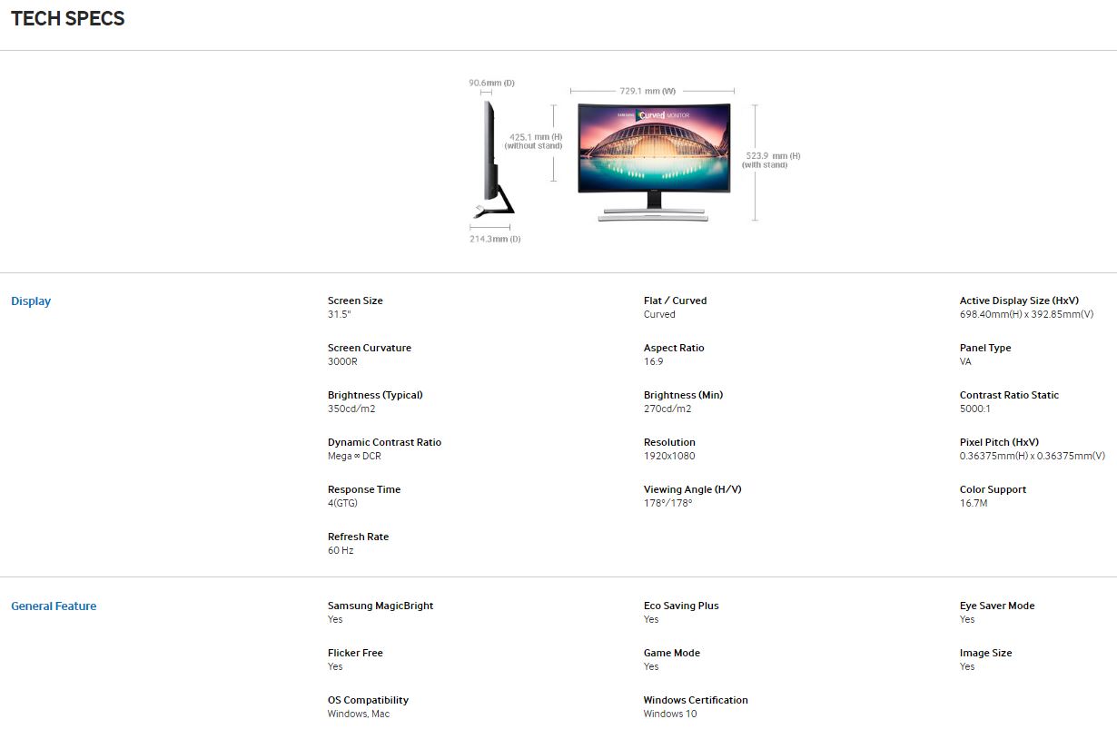 1 X Samsung S32E590C VA Curved Panel Integrated Speakers 32"