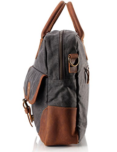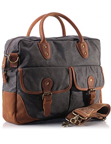 -. Brand : ZEKAR -. Color : grey -. Department : mens -. Feature : Material: high quality waxed canvas & crazy house leather trim / Slightly Waterproof / Dimensions: 15.7"x3.5"x11.6", fit for 14 inch laptop / Multi pockets for assorting things / Daily use for commute bag, laptop bag, shoulder bag, briefcase, tote bag, crossbody -. Model : lp007 -. ProductGroup : Apparel -. ProductTypeName : LAGE -. Size : Medium -. Title : ZEKAR Waxed Canvas Leather Trim Laptop Bag, Vintage Grey Classic Briefcase