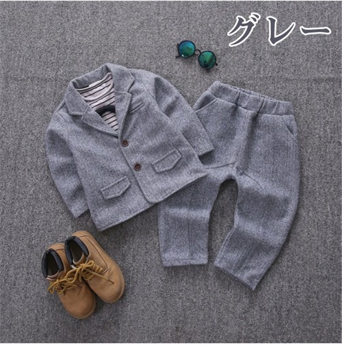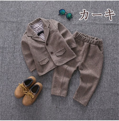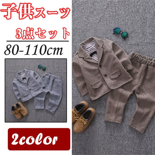 内容物:3点セット(ジャケット、パンツ、シャツ) 素材:ポリエステル、綿 サイズ:5# お勧め身長80cm 着丈:37cm バスト:66cm ズボン丈:51cm 7# お勧め身長90cm 着丈:40cm バスト:70cm ズボン丈:55cm 9# お勧め身長100cm 着丈:43cm バスト:74cm ズボン丈:61cm 11# お勧め身長110cm 着丈:46cm バスト: 78cm ズボン丈:67cm 縫製の状態や素材によりまして、若干の誤差がある場合がございます。あらかじめご了承ください。 ※色落ちや色移りすることがございますので、他のものとは分けて洗濯してください。
