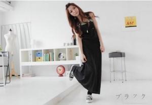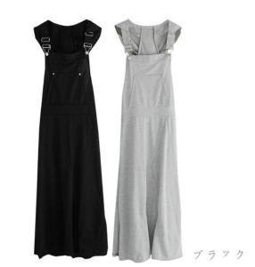 サスペンダー マキシ丈ワンピース ロング丈 カジュアル ノースリーブ ジャンパースカート マキシワンピ