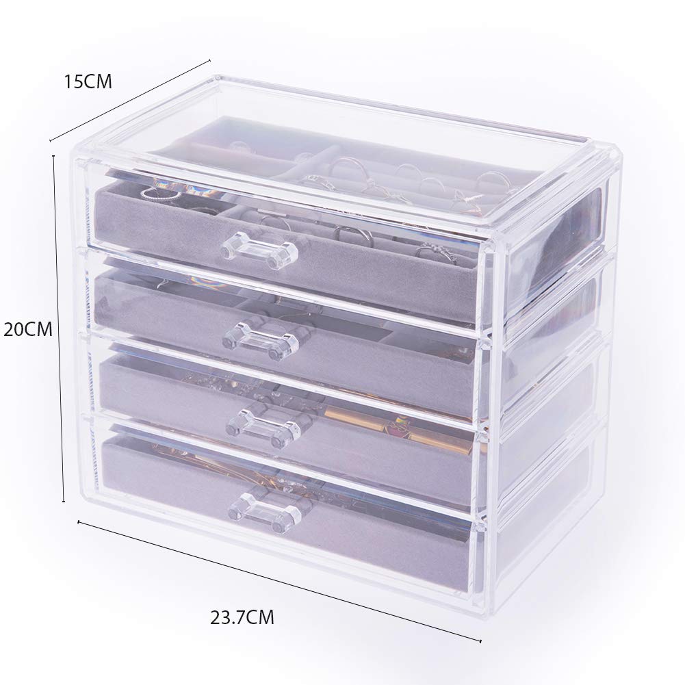 透明デザイン:アクリルの透明の素材を生かした、中身が見えるジュエリーケースです。傷がつきにくく透明感が高いアクリル素材を使用しました。