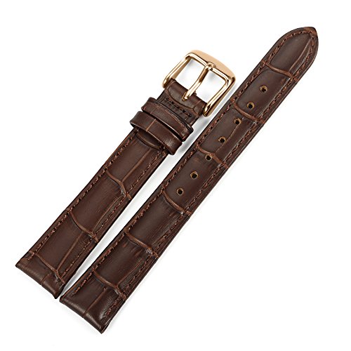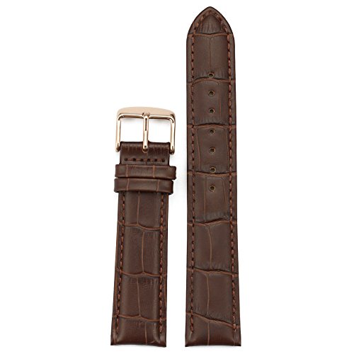 (iStrap)/Watches/Categories/DIRECT FROM USA/iStrap 18mm Calfskin Replacement Watch Band With Rose Gold Pin Buckle for Men Women - Brown