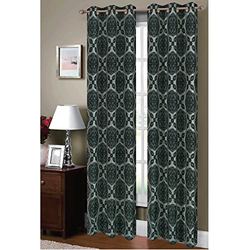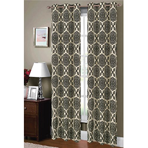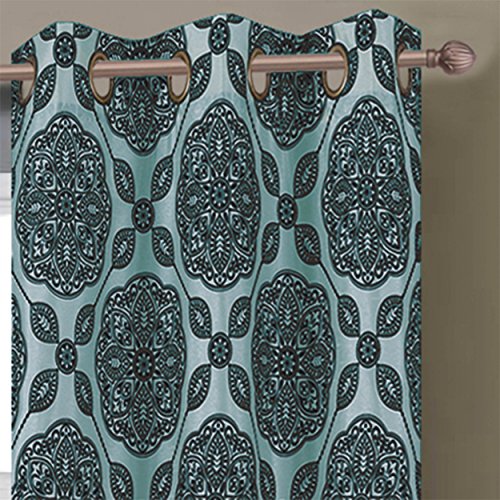 Includes 2 unlined flocked faux silk grommet curtain panels