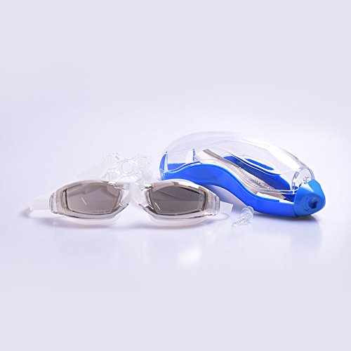 Swimming Goggles, GOUP Unisex Adult UV Waterproof Anti-fog Goggles Mirrored Electroplate Goggles Protection Swim Goggles for Men Women Indoor Open Water, Clear Anti-Shatter with Glass Case