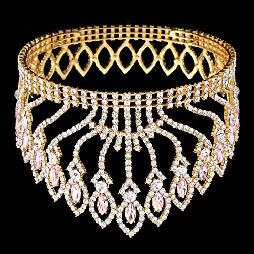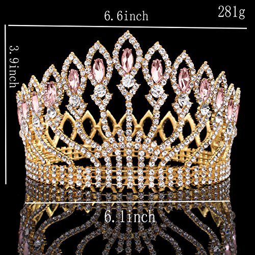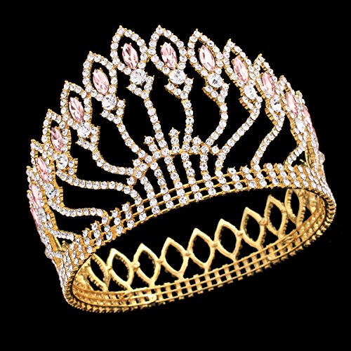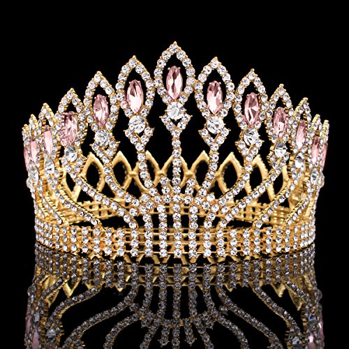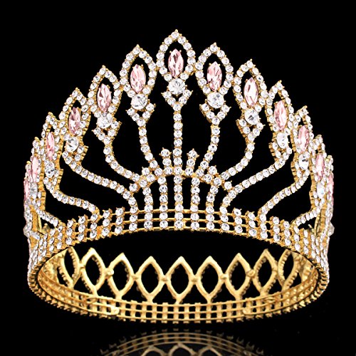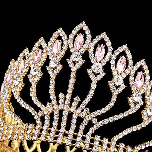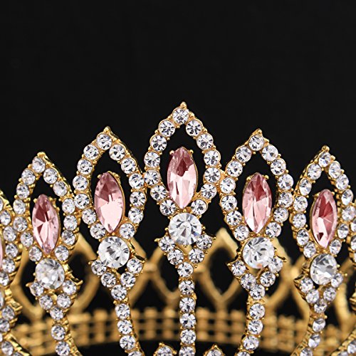 ZebratownLuxury Shining Gold Plated Tiaras Crystal Rhinestones Wedding Pageant Prom Party Crown Hair Jewellery (Pink)