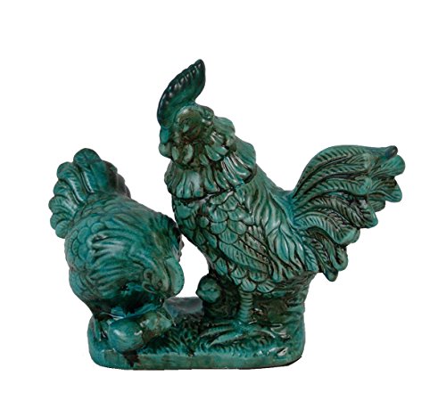 -. Feature : Made out of ceramic / Intricate rooster & hen shaped design / Finished in turquoise / Dimensions: 8.5W x 4.25D x 10.5H in.