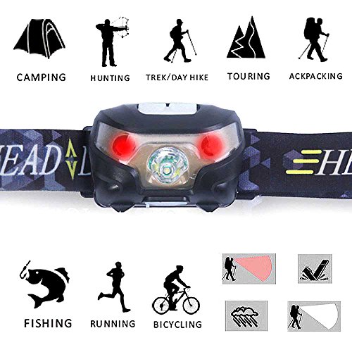 ✔ Super Bright cree LED Headlamp - Super bright Head Mounted Flashlight with Red Light for Night Vision, double switch designed for either Red LED or white light to adjust DIMMABLE Lumens between 3 lighting model;