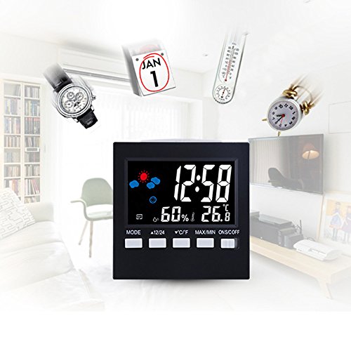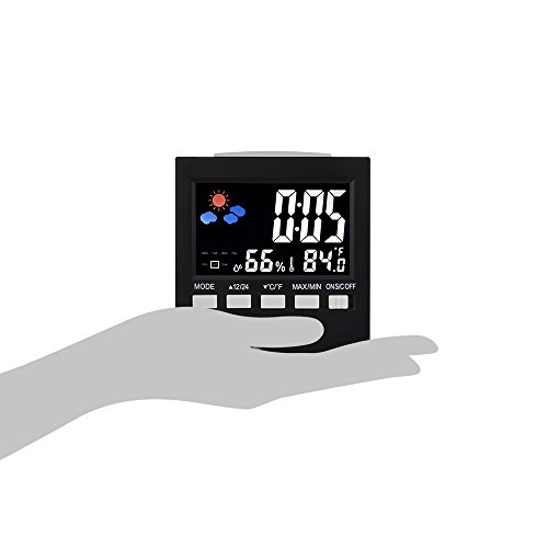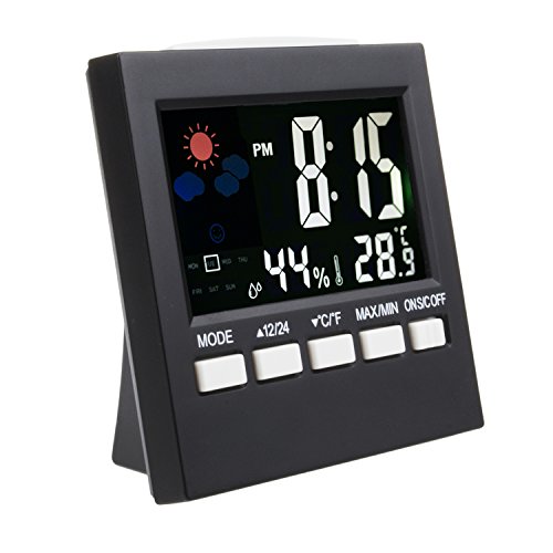 Multifunctional Clock - Digital indoor weather thermometer includes time, date, alarm clock, temperature (change between °C and °F), humidity and weather forecast trend