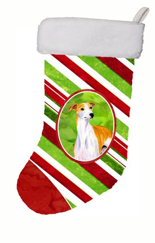 Caroline's Treasures Whippet Candy Cane Holiday Christmas Stocking, 11 x 18", Multicolor