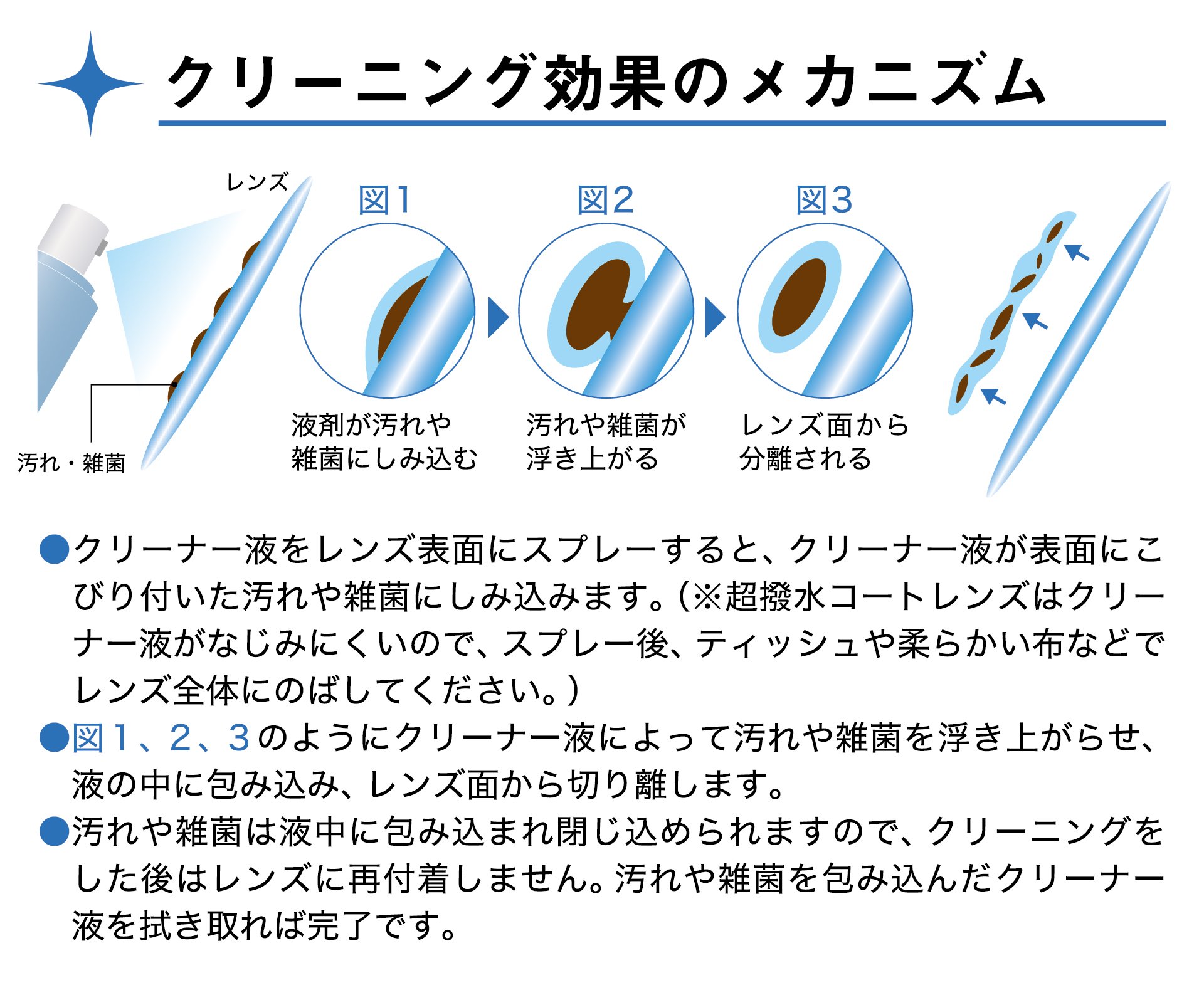 ● By closely adhering foam to the lens, it adsorbs fine dirt and sebum and bacteria which are difficult to remove.