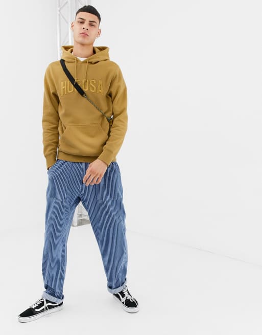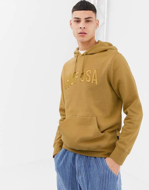HUF Hoodie With Embroidered Team Logo In Honey Mustard