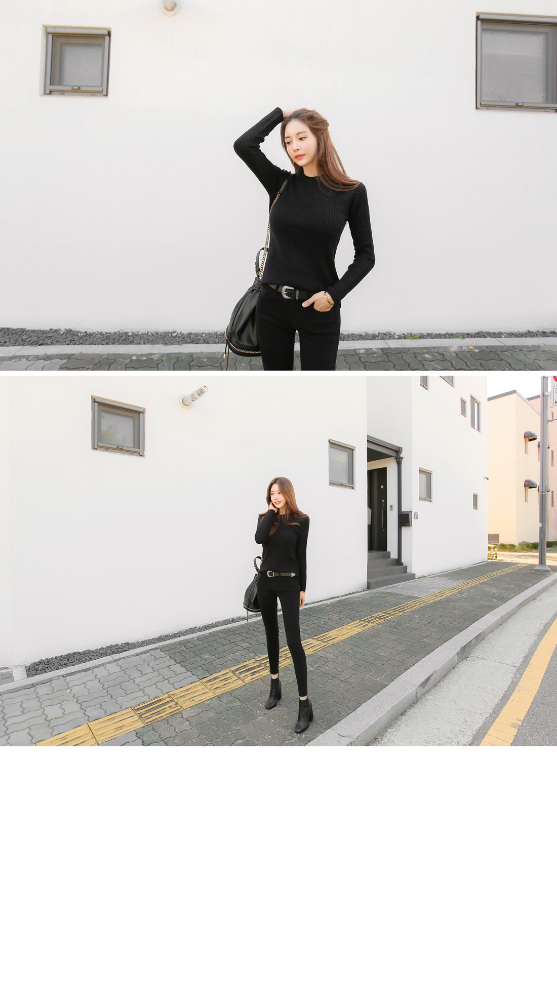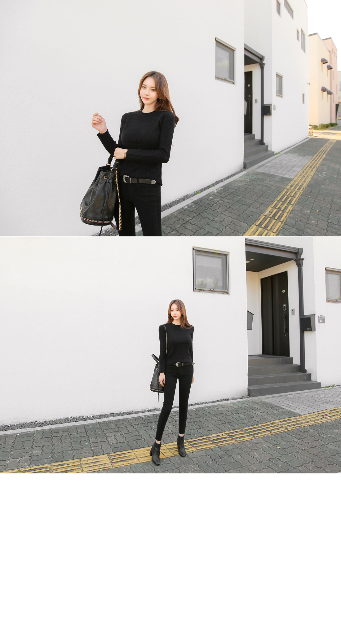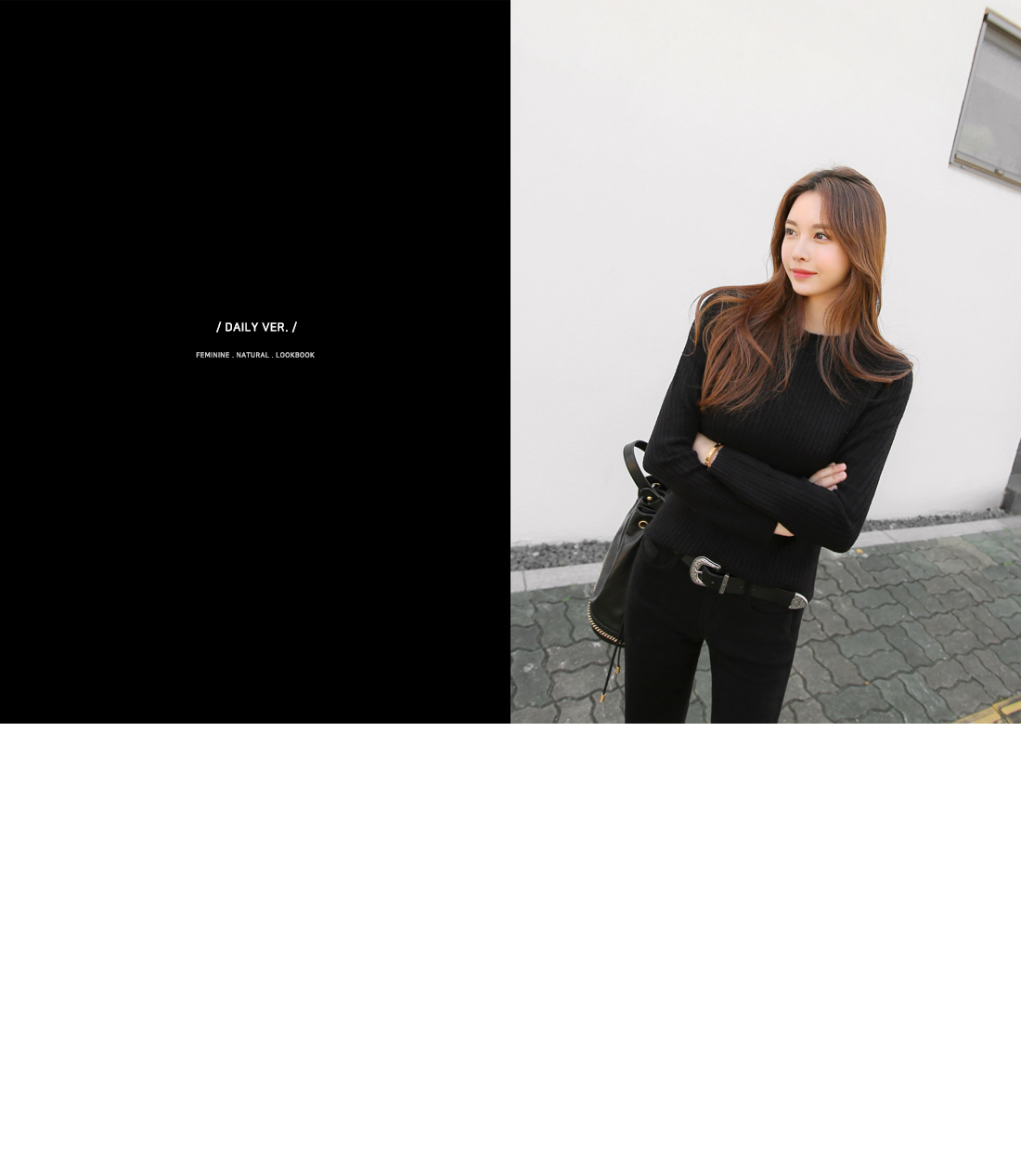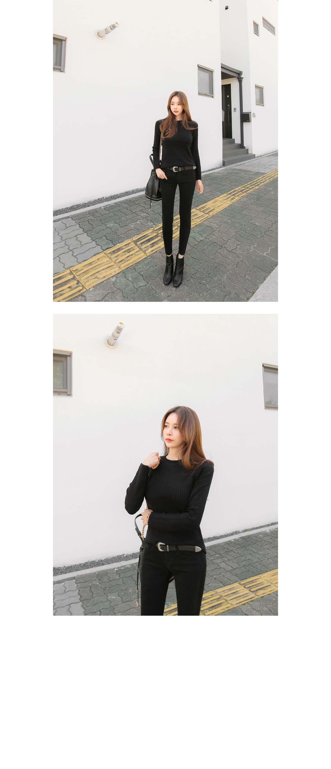 하나쯤 꼭! 필요한 라운드 골지니트 소개 해 드릴게요. 부드러운 터칭감과 함께 뛰어난 신축성으로 바디를 부드럽게 감싸주는 소재로 제작이 되어 기분좋은 착용감으로 매일 입고싶어지는 아이템 이에요. 네크라인을 감싸주는 라운드 디자인으로 고혹적이면서 슬림한 핏감으로 볼륨감 있는 바디라인이 페미닌하게 연출 되구요. 세로골지 느낌이 더욱 볼륨감 있는 여성스러운 실루엣을 선사해 드린답니다. 깔끔하면서 밋밋하지않은 디자인으로 다양한 아이템들과 두루두루 스타일링 가능해 활용도 높을뿐만 아니라 컬러별로도 소장가치 높답니다. 다양한컬러로 컬러 준비했으며, 모델이 착용한 컬러는 블랙 입니다.
