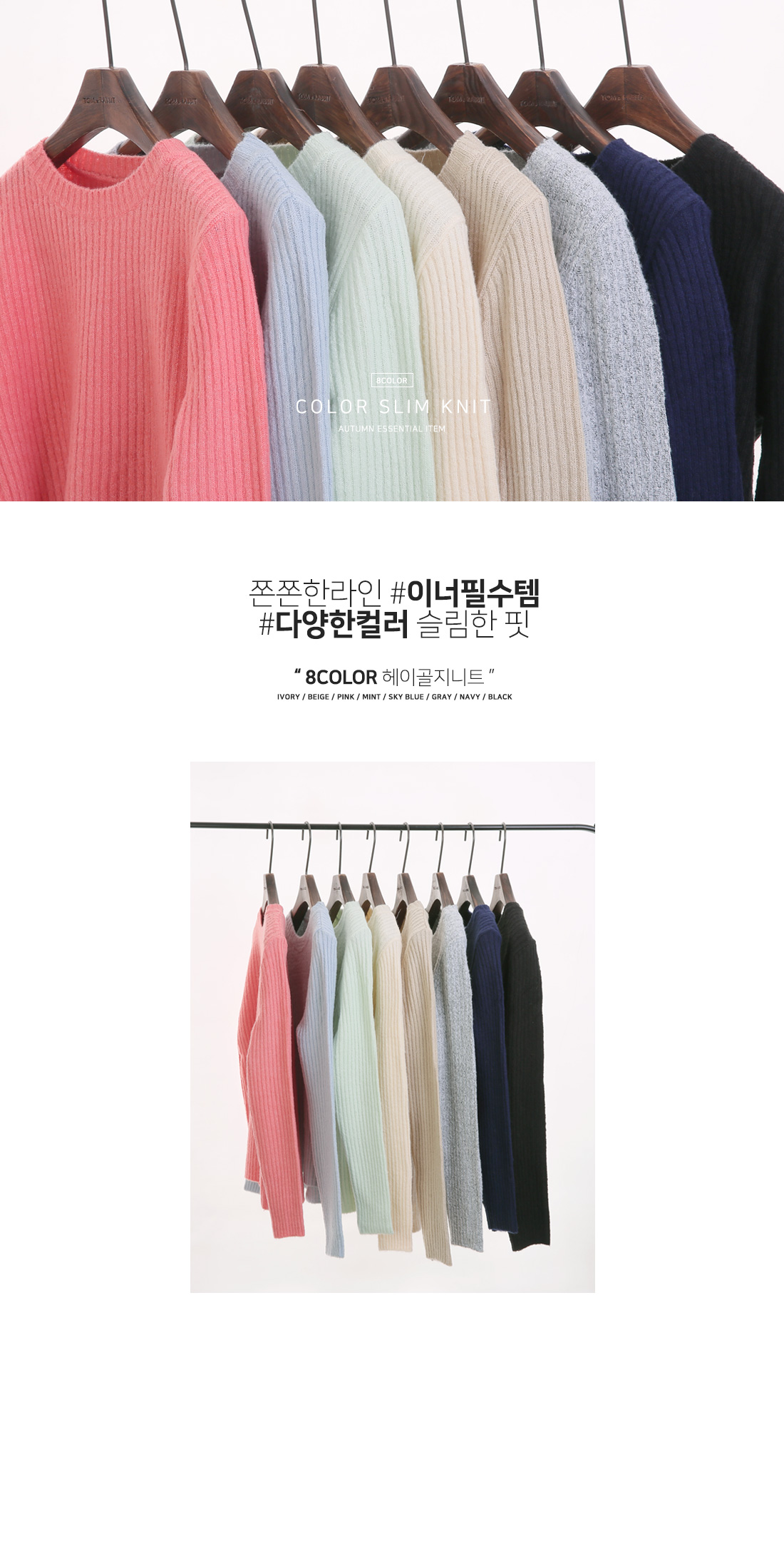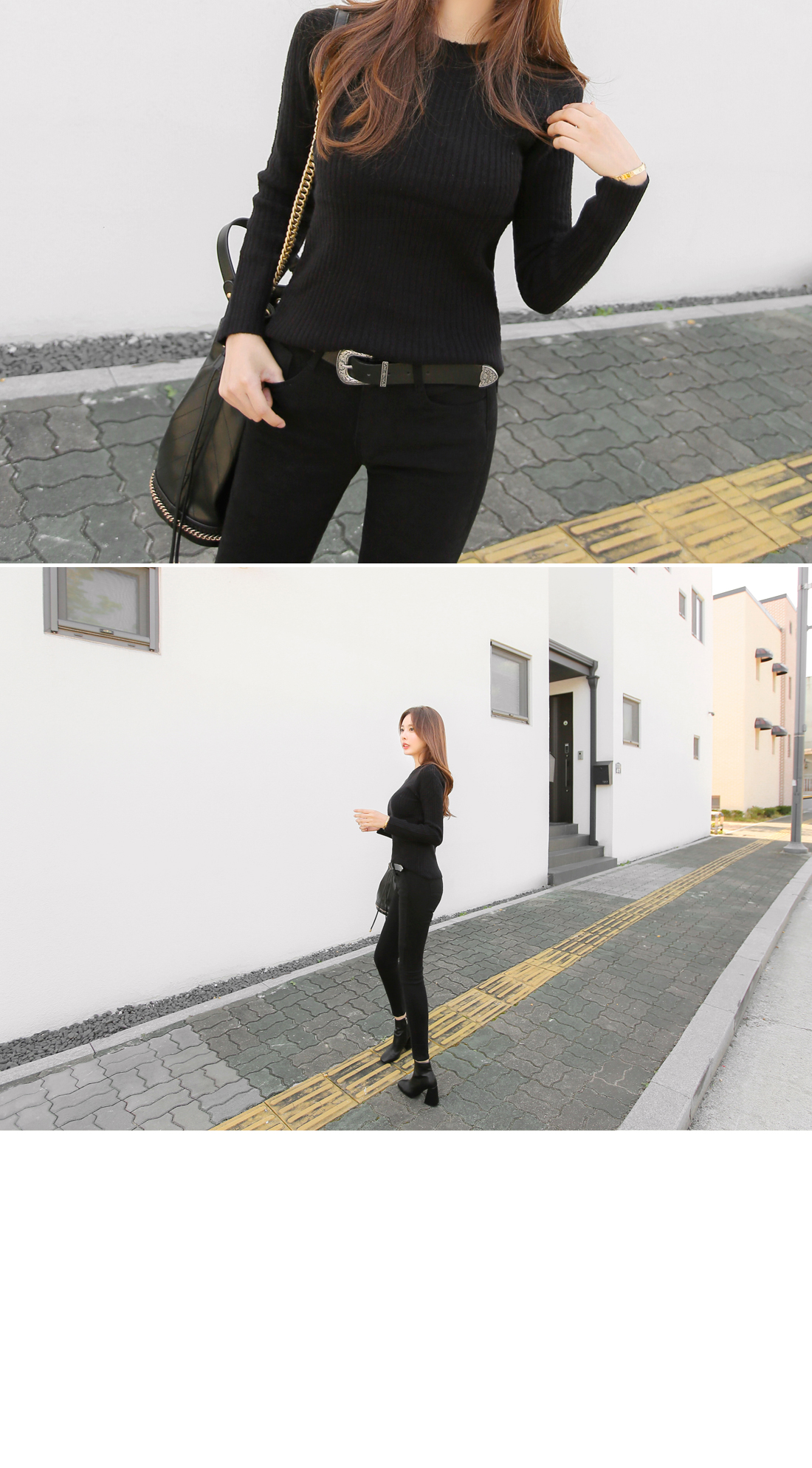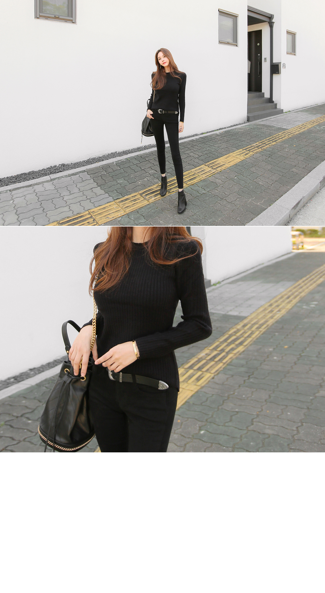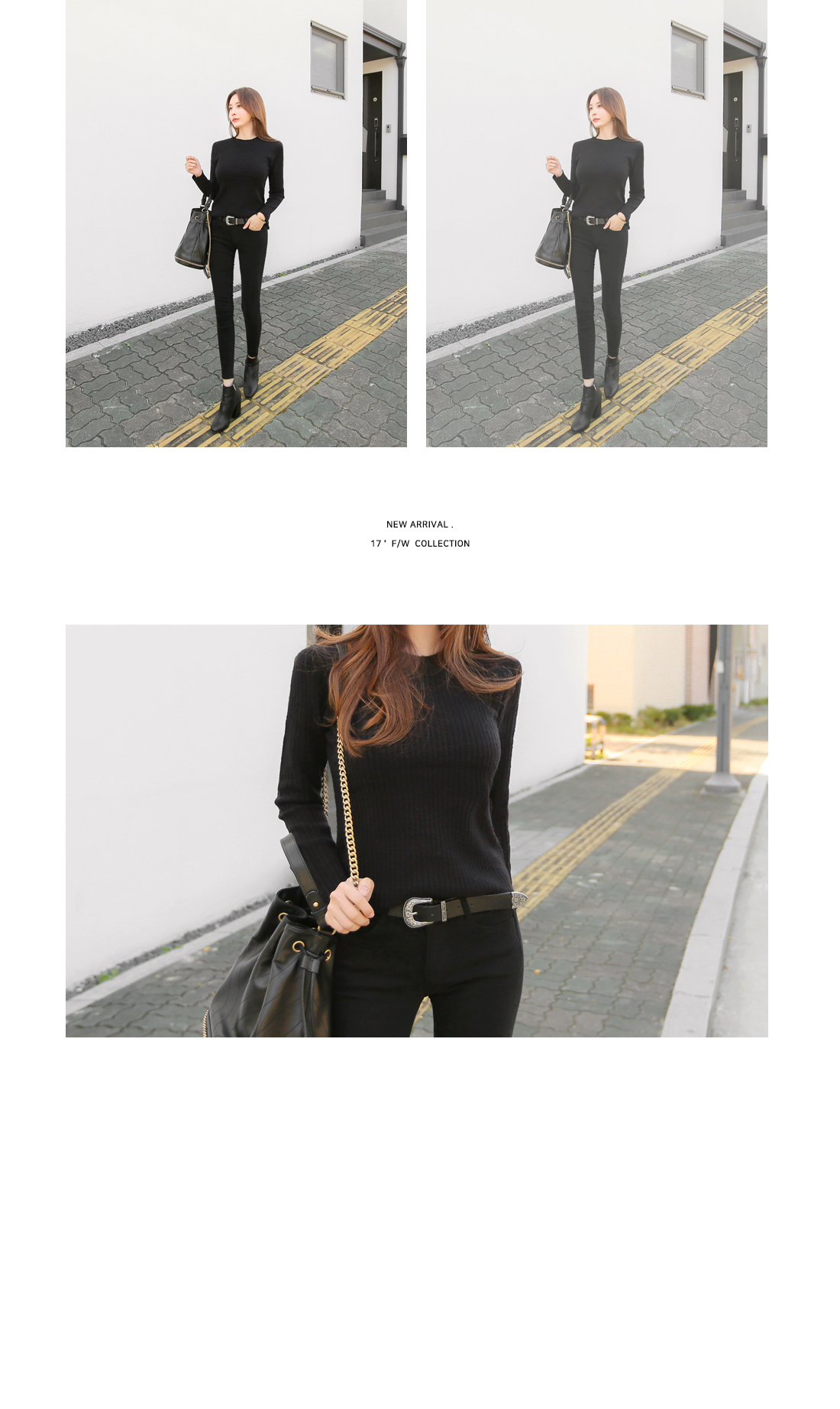 하나쯤 꼭! 필요한 라운드 골지니트 소개 해 드릴게요. 부드러운 터칭감과 함께 뛰어난 신축성으로 바디를 부드럽게 감싸주는 소재로 제작이 되어 기분좋은 착용감으로 매일 입고싶어지는 아이템 이에요. 네크라인을 감싸주는 라운드 디자인으로 고혹적이면서 슬림한 핏감으로 볼륨감 있는 바디라인이 페미닌하게 연출 되구요. 세로골지 느낌이 더욱 볼륨감 있는 여성스러운 실루엣을 선사해 드린답니다. 깔끔하면서 밋밋하지않은 디자인으로 다양한 아이템들과 두루두루 스타일링 가능해 활용도 높을뿐만 아니라 컬러별로도 소장가치 높답니다. 다양한컬러로 컬러 준비했으며, 모델이 착용한 컬러는 블랙 입니다.