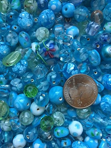 Cocoa's Aqua Blue Green Premium Mix Lamp Work & Glass Bead Mix 100 Grams 50-55 Beads Size 6mm to 16MM, Wedding Cakes, AB Crystals, Jewelry Makers Dream of Blues/Greens, Free Fast Shipping in USA