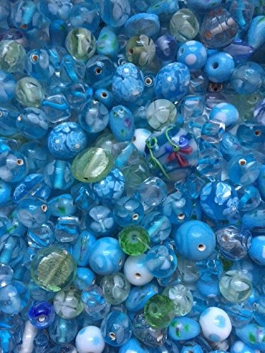 - Mixture of LampWork Beads Ocean Blue Floral
