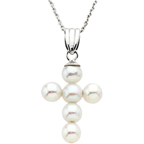 -. Title : Childrens Freshwater Cultured Pearl Cross 14k White Gold Pendant Necklace (4.5-5mm), 16"