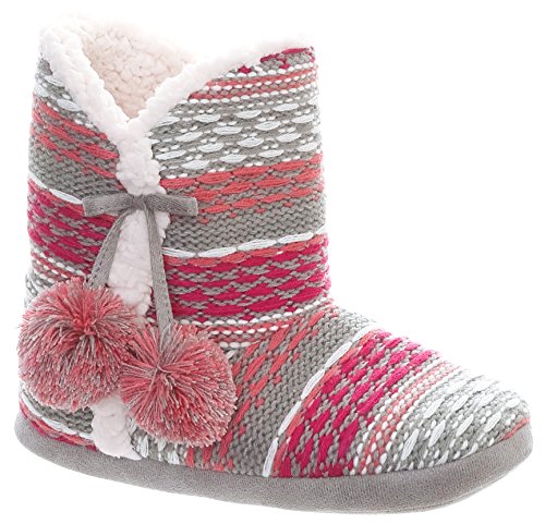 Capelli New York Ladies Knit Indoor Slipper Boot with Faux Fur