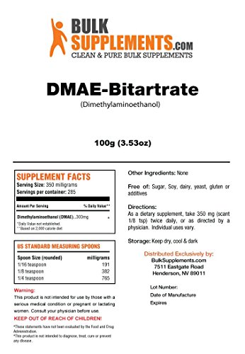 - Title : BulkSupplements Pure DMAE-Bitartrate Powder (100 grams)
