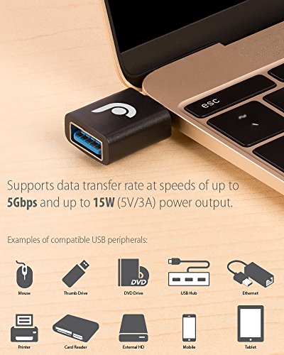 Works as an OTG for smartphones and tablets. Allows connection from any USB supported device to your MacBook or phone with a USB Type-C port