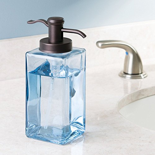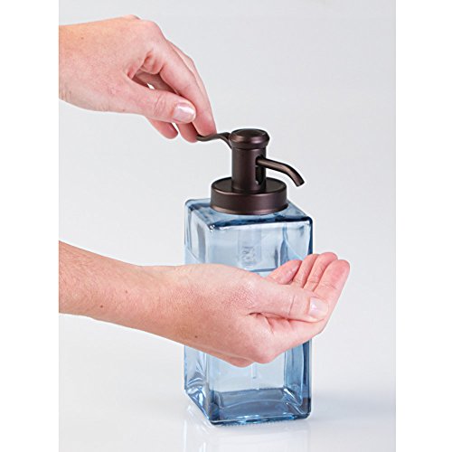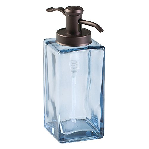 InterDesign Casilla Glass Soap Dispenser Pump for Body Moisturizer, Liquid Hand Soap, Sanitizer or Aromatherapy Lotion - Navy/Bronze
