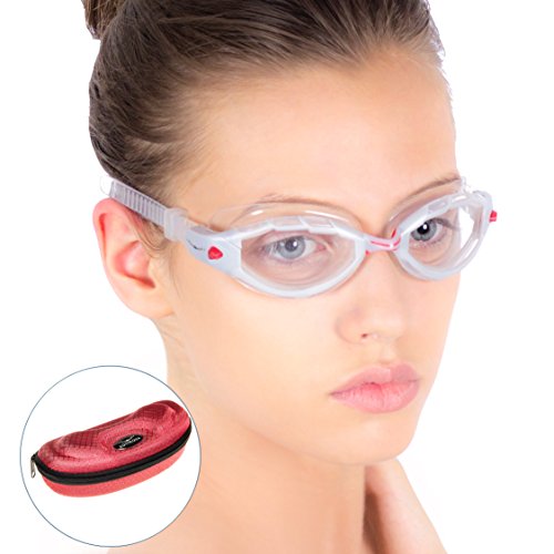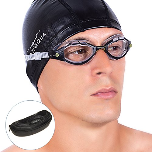 Clear Swimming Goggles + Exclusive Design Case by AqtivAqua ~ Best for Swim Workouts or Open Water Activities