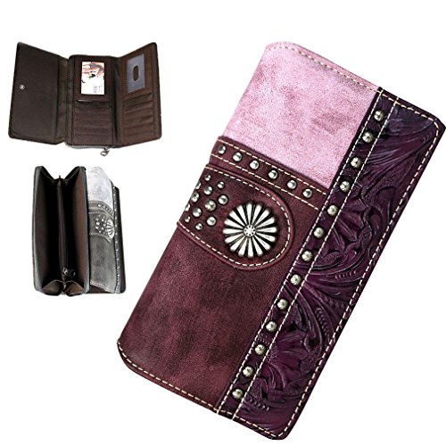 Studio : Western Fashion Publisher : Western Fashion Binding : Apparel Product Description Montana West Color Block, Tooled Design Secretary Style Wallet- Burgundy