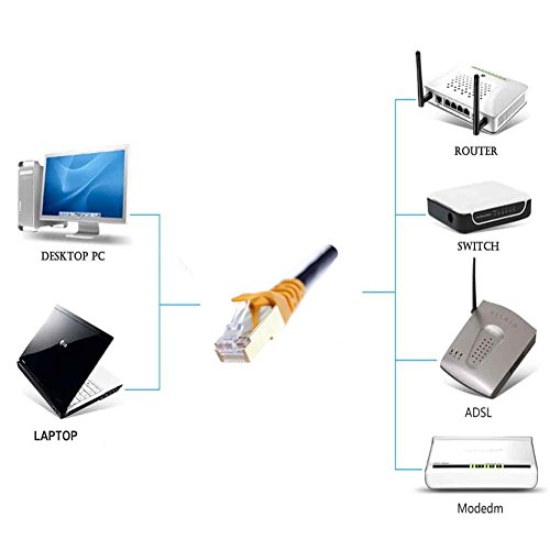 Cat7 patch cable connects all the hardware destinations on a high speed Gigabit Local Area Network (LAN), such as PCs, computer servers, printers, routers, switch boxes, network media players, NAS, VoIP phones, PoE devices