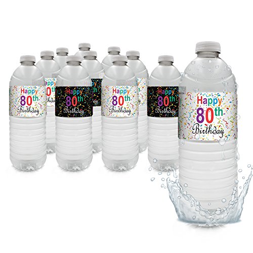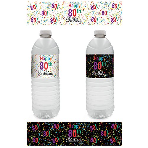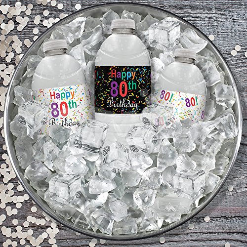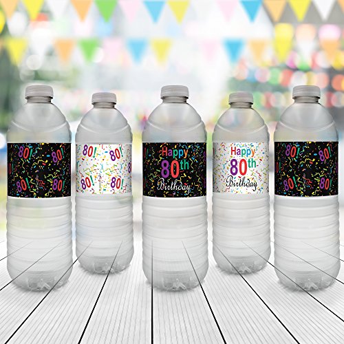 80th Birthday Party Water Bottle Labels - Multi-Colored (20 Count)