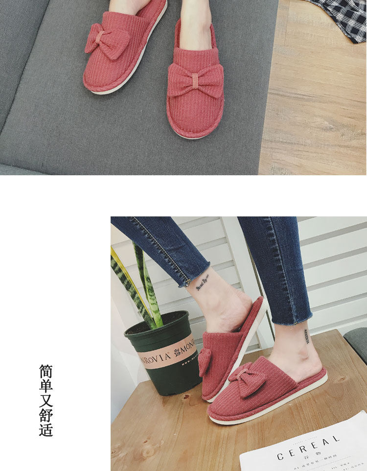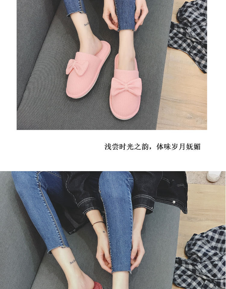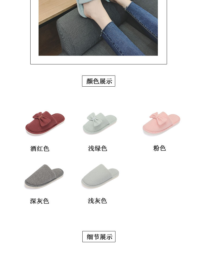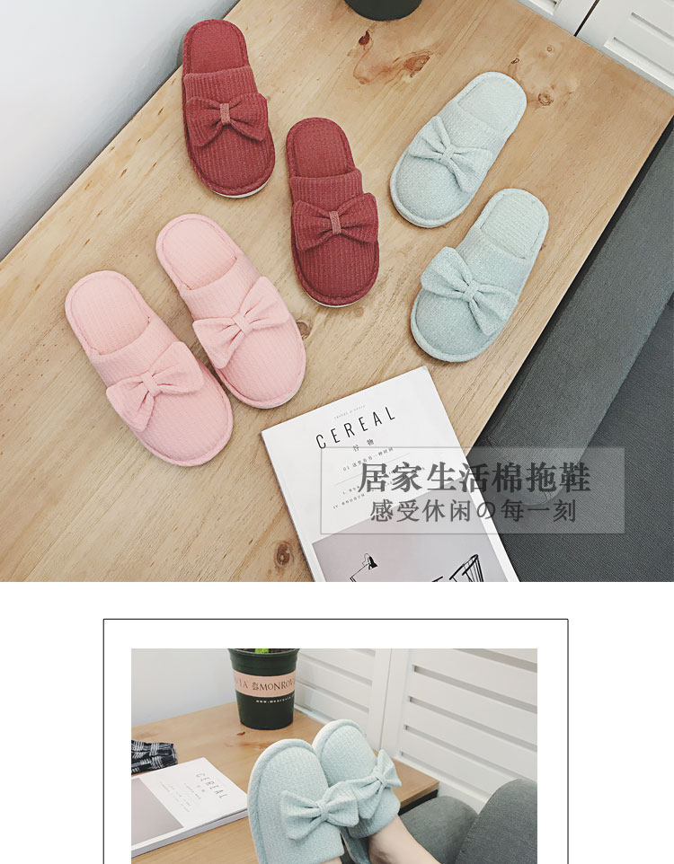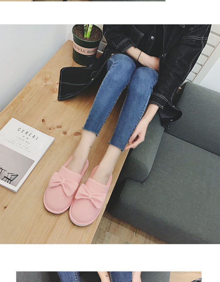 棉拖鞋女冬居家韩版情侣室内拖鞋蝴蝶结可爱月子鞋办公室地板拖鞋