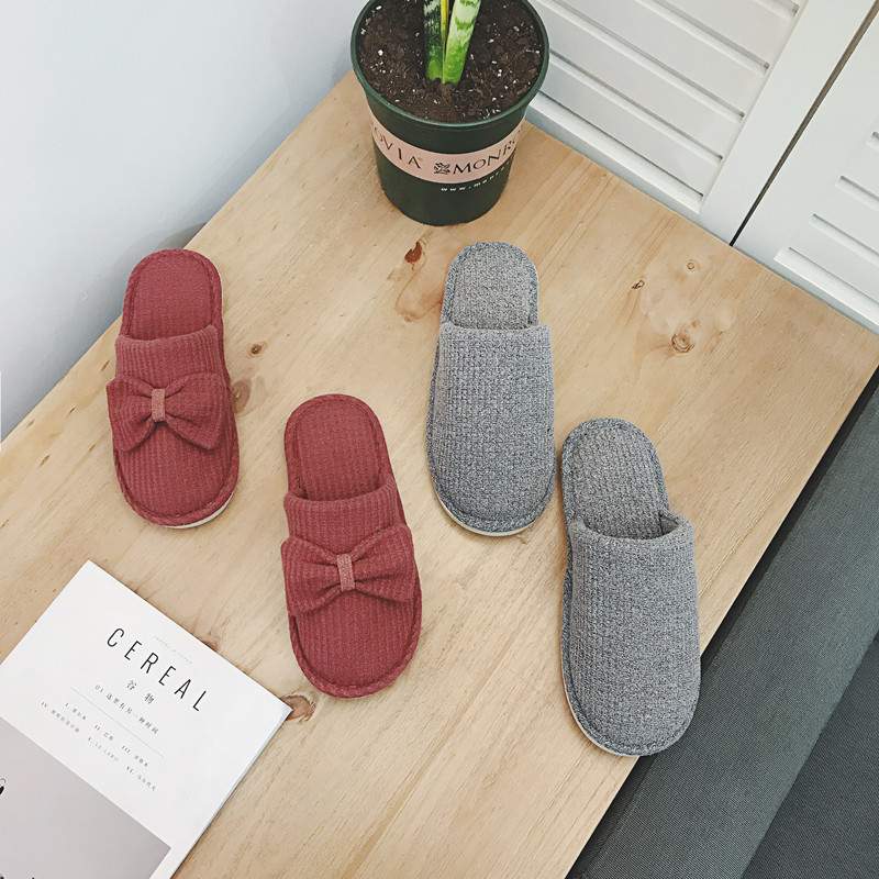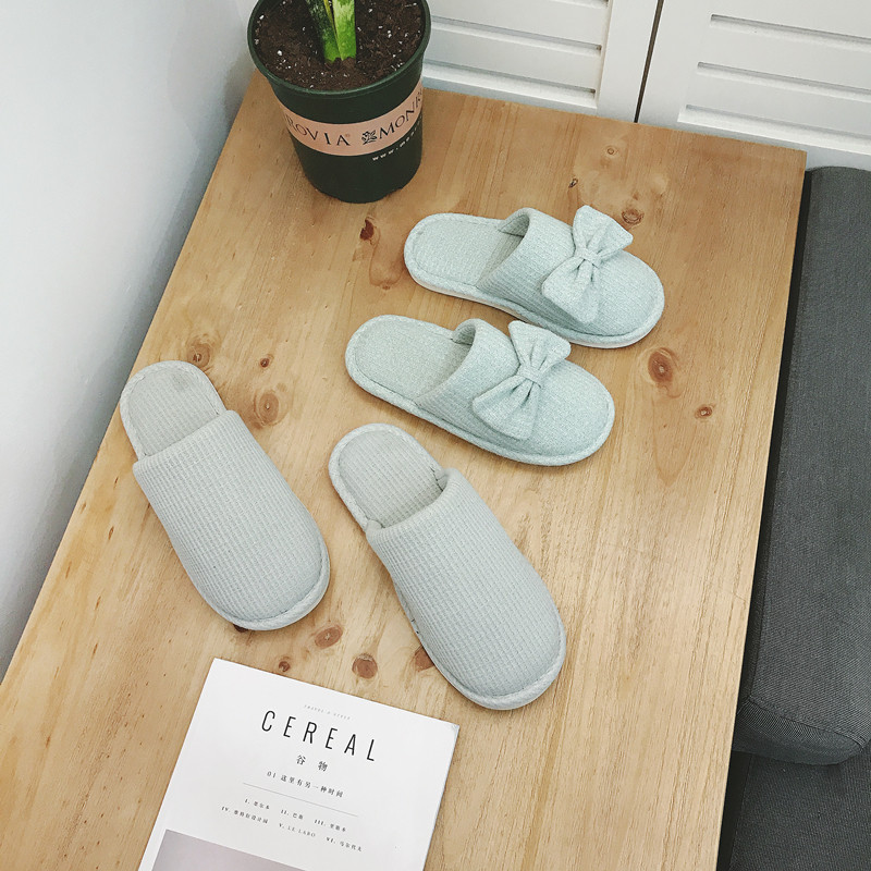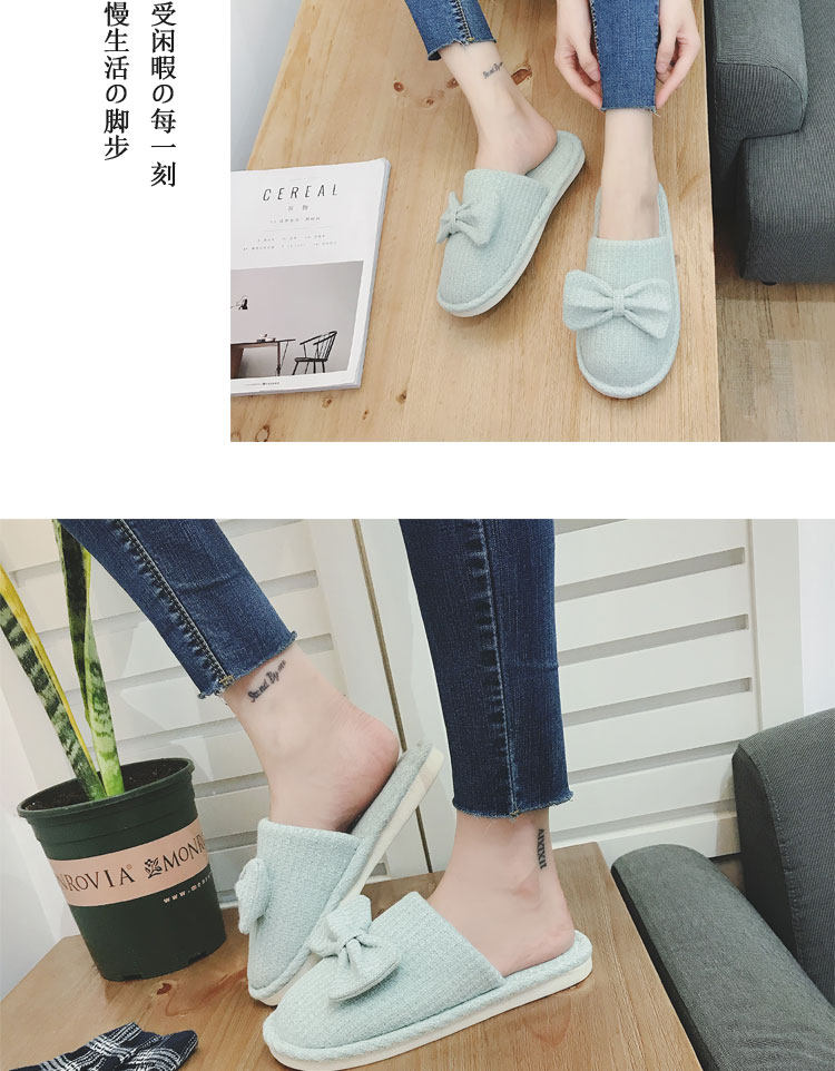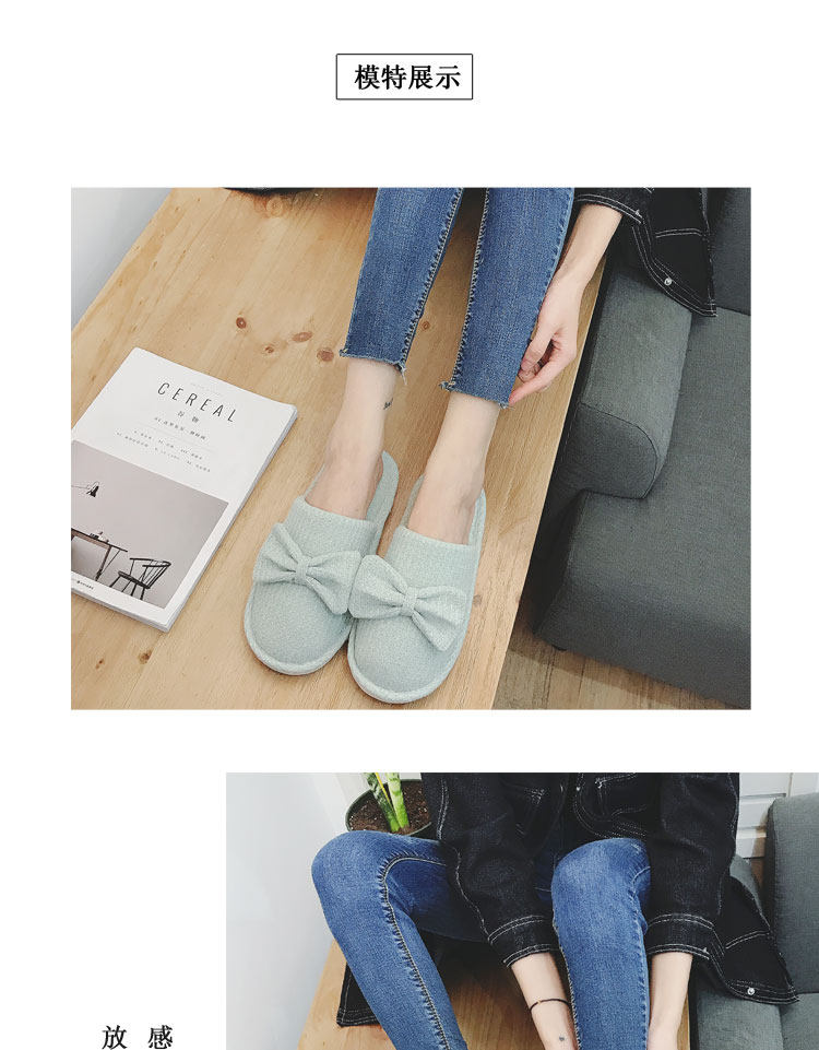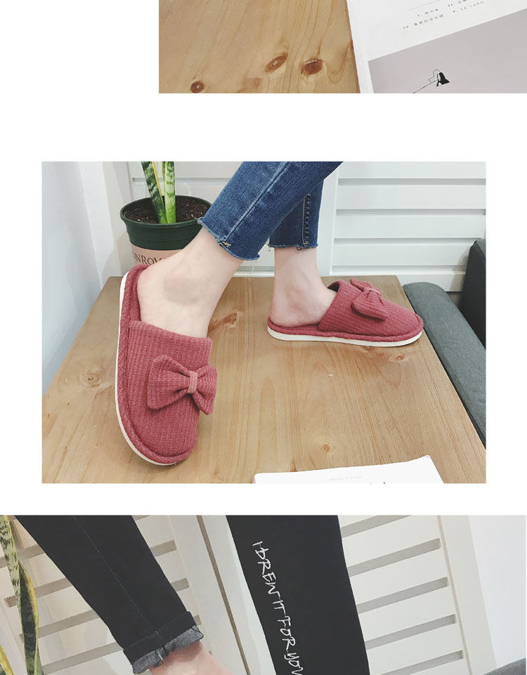 棉拖鞋女冬居家韩版情侣室内拖鞋蝴蝶结可爱月子鞋办公室地板拖鞋