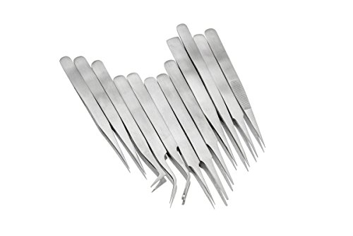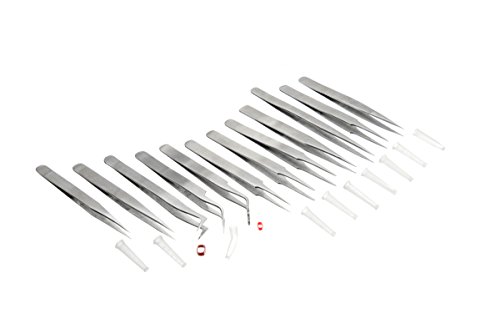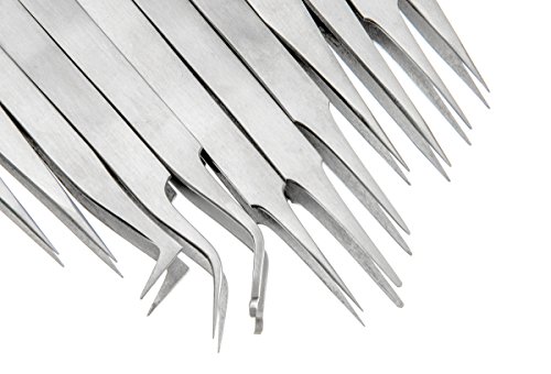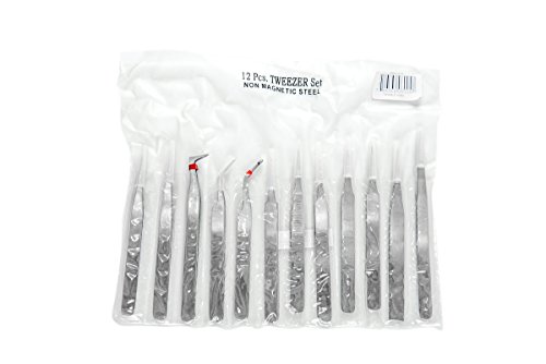 SE TW2-412 12 Piece Non-Magnetic Stainless Steel Tweezers Set