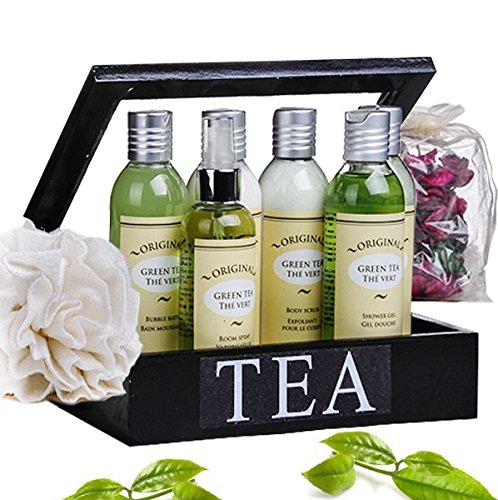 The Total State of Green tean spa gift basket is a beautiful and unique way to extend the gift of rest and relaxation. This basket includes a variety of products. - 3 oz. Luminessence Cucumber Scented Candle - 7 oz. Cucumber Melon Venezla Soapwords Moisturizing Soap - Hand Soap (7 oz.), Body Lotion (10 oz.) and Hand Cream (7 oz.) from Jean Philippe Apothecary - Hand towel, loofah, glove scrubber, pumice stone - 2 oz. Zen Harmony Bath SaltsFeature