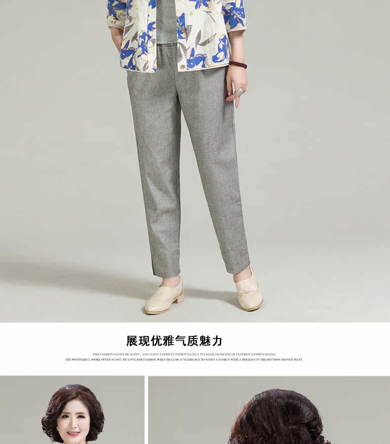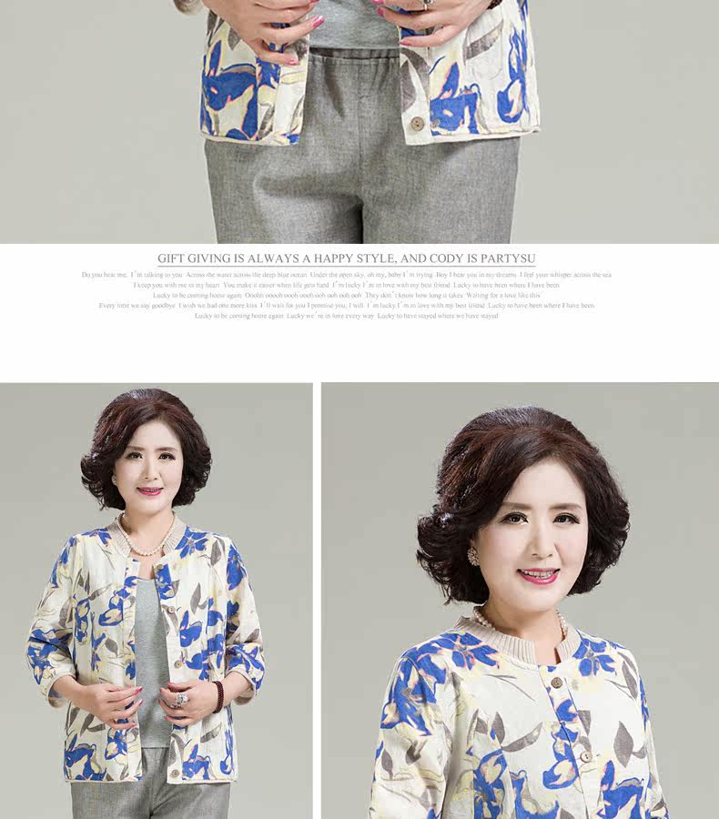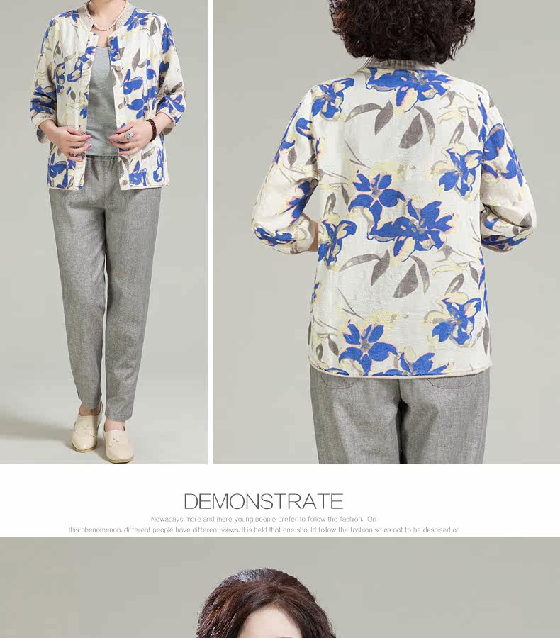 中老年女装妈妈棉麻短袖七分袖宽松休闲中年圆领开衫薄外套女T恤