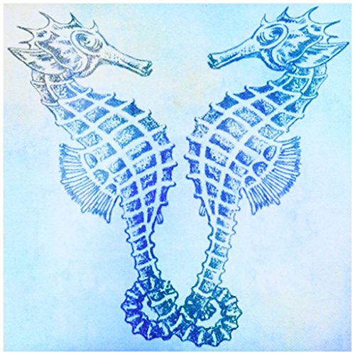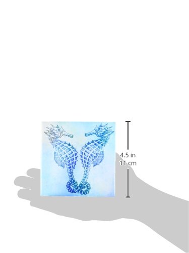 3dRose cst_79382_3 Aqua Seahorses-Beach Theme Vintage Art Ceramic Tile Coaster (Set of 4)