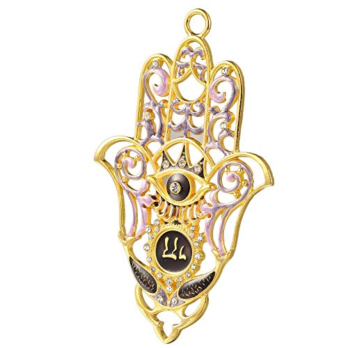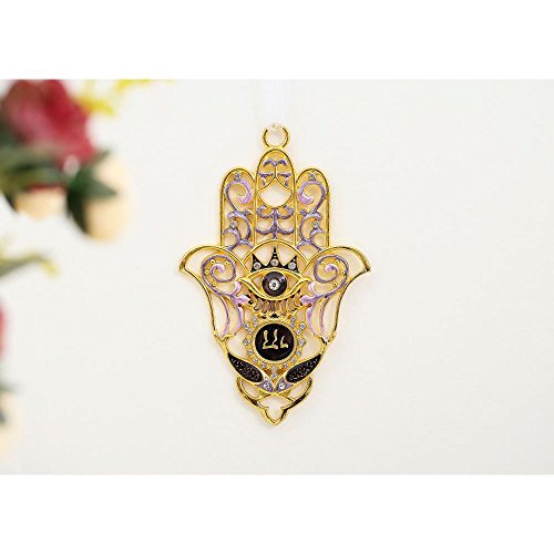 Hanging Hamsa with Evil Eye Wall Décor Ornament w/ Matashi Crystals (Pewter) Traditional Hamsa Decoration | Gold-Plated Finish| Hanging Pendant Charm | Holiday Gift