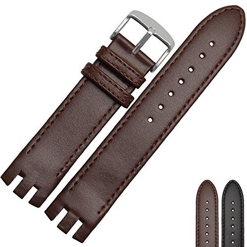 -. Title : MSTRE NP128 20mm Calfskin Leather Watch Band For Men's SWatch Metal Series Watches