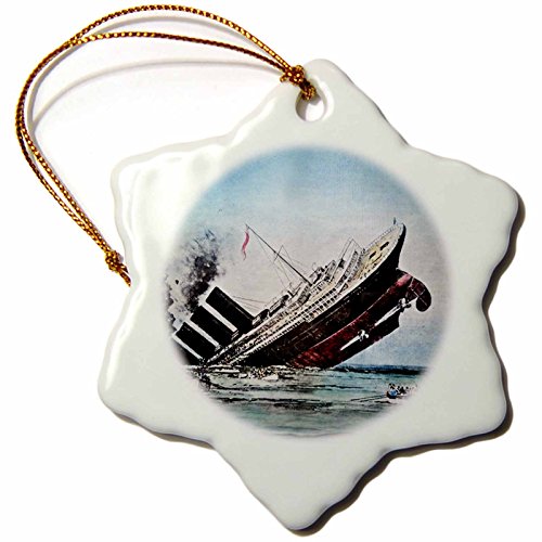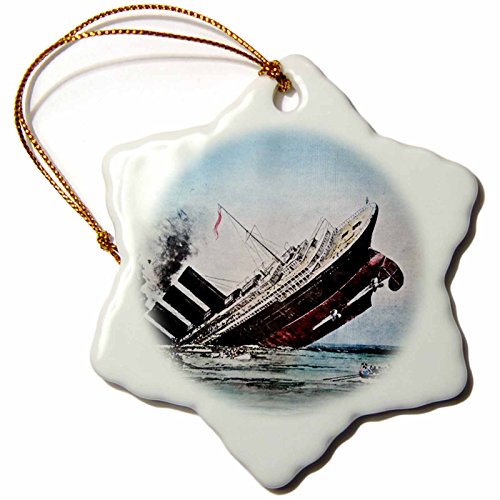 3dRose orn_77413_1 Titanic Sinking Magic Lantern Slide Snowflake Decorative Hanging Ornament, Porcelain, 3-Inch