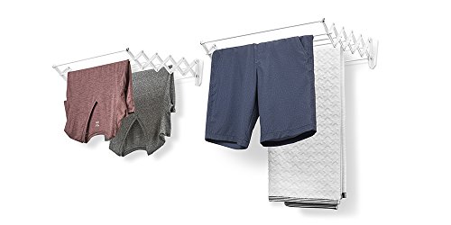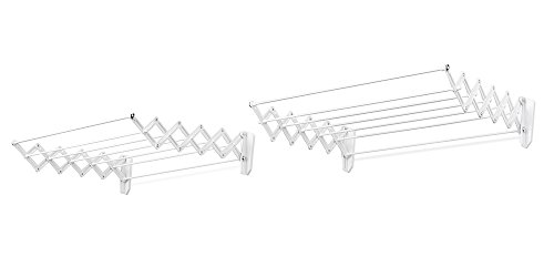 EverHome Wall-Mount Drying Rack, 24-inch Wide Frame, 7 Retractable Rods for Hanging Clothes, 2-Pack set, White