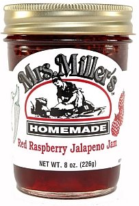 [Product Information]- 3 - 8 oz. jars of Mrs. Millers homemade Jalapeno Red Raspberry Jam
