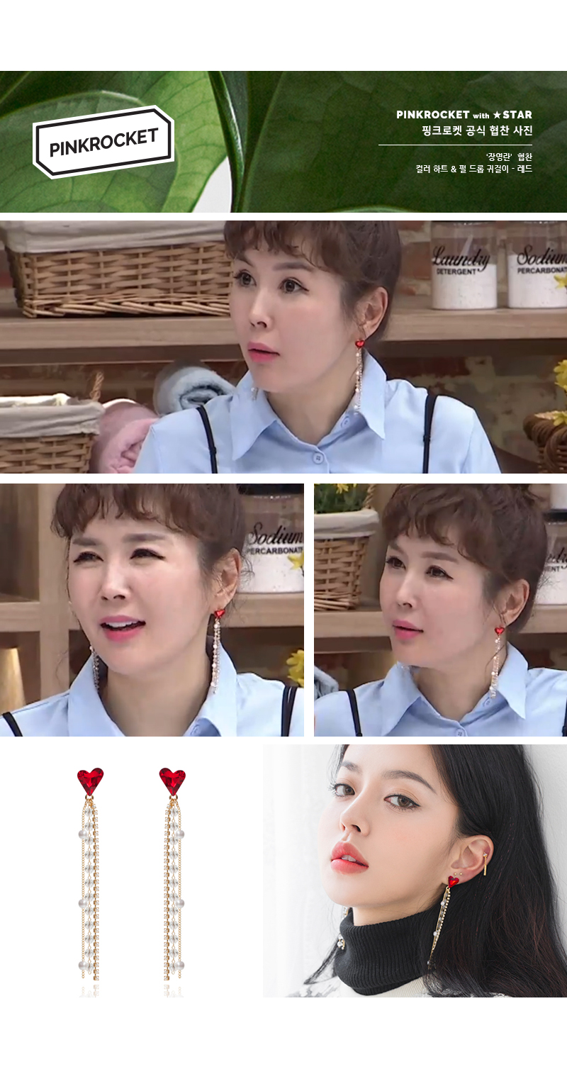 EARRING or PIERCING- 컬러 하트 & 펄 드롭 귀걸이 (레드),