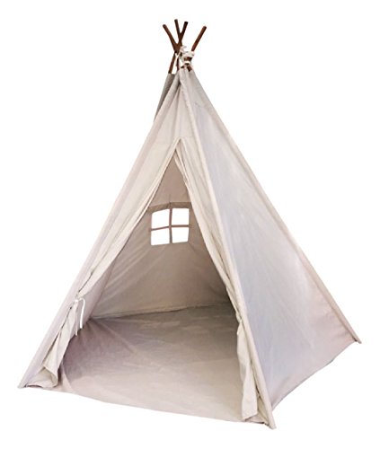 Product DescriptionOff white teepee 5-pole tent. Made of durable cotton canvas, comes with carry case and measures 48"x48"x72".0