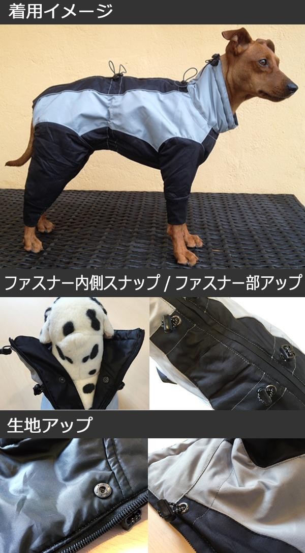 | 首から脚元まで全身をしっかりとカバーするスタイリッシュなデザインのペット用スノースーツ!!伸縮性のある柔らかな袖口のリブがワンちゃんの脚に優しくフィットし、下からのすきま風や雨の侵入を防ぎます。撥水・防風・汚れに強い生地はなめらかで、肌ざわりもよく毛がつきにくいのでお手入れも楽々♪断熱効果の高い中綿入りでほどよい厚みもあり、着ごこちを損なうことなくしっかりと寒さを防ぎます。 |