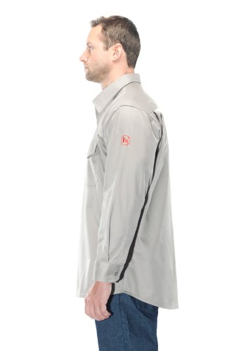 Benchmark FR 1028FRLG-3XL Men's Flame Resistant Button Front Cotton Shirt, Dual Hazard, HRC 2, NFPA 2112, Light Gray, 3X-Large