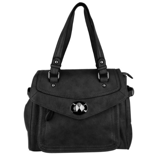 - Title : Black Designer Inspired Turnlock Leatherette Office Tote Shopper Shoulder Bag Satchel Handbag