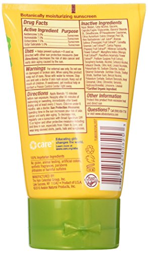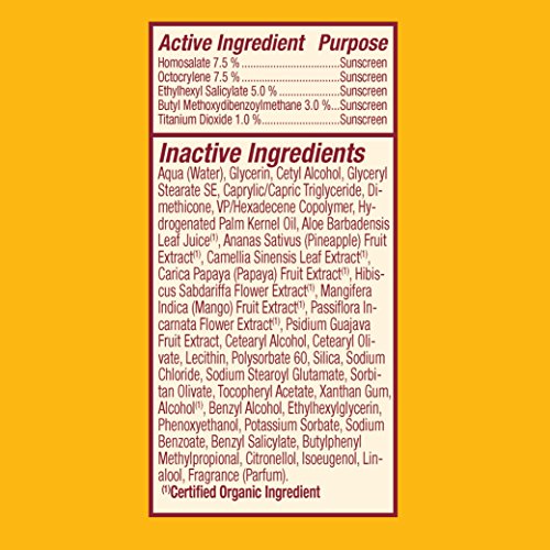 Very water resistant (up to 80 minutes), biodegradable, gluten-free, broad spectrum protection with aloe vera, sunflower oil and tropical fruit extracts