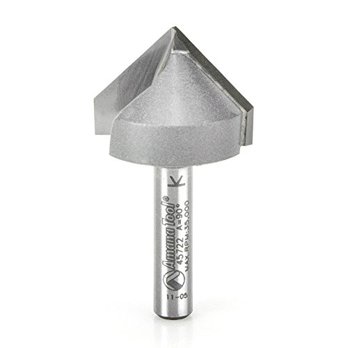 Amana Tool 45722 Carbide Tipped V Groove 90 Deg x 1 Inch D x 5/8 CH x 1/4 SHK Router Bit
