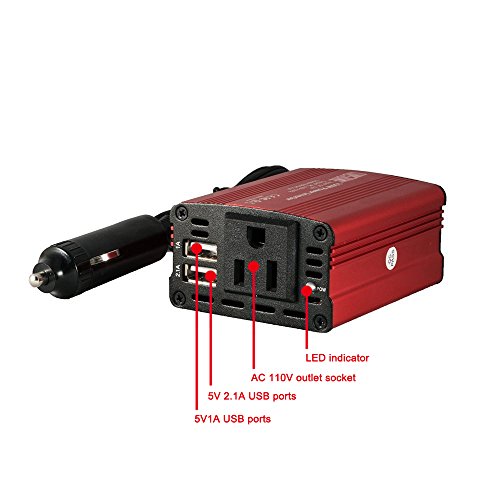 Uinstone 150W Car Power Inverter DC 12V to 110V AC Converter with 3.1A Dual USB Car USB Charger