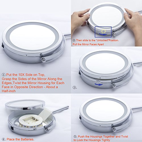 Double Side with 1x & 10x Magnification - The Amazing10x Magnification Side is Ideal for Applying Make-Up and Other Beauty Treatments that Require More Precision Extra Precision, Such As Applying Contact Lenses and Eyebrow Tweezing, the Non-Magnified Side is Perfect for Doing Your Hair and Grooming